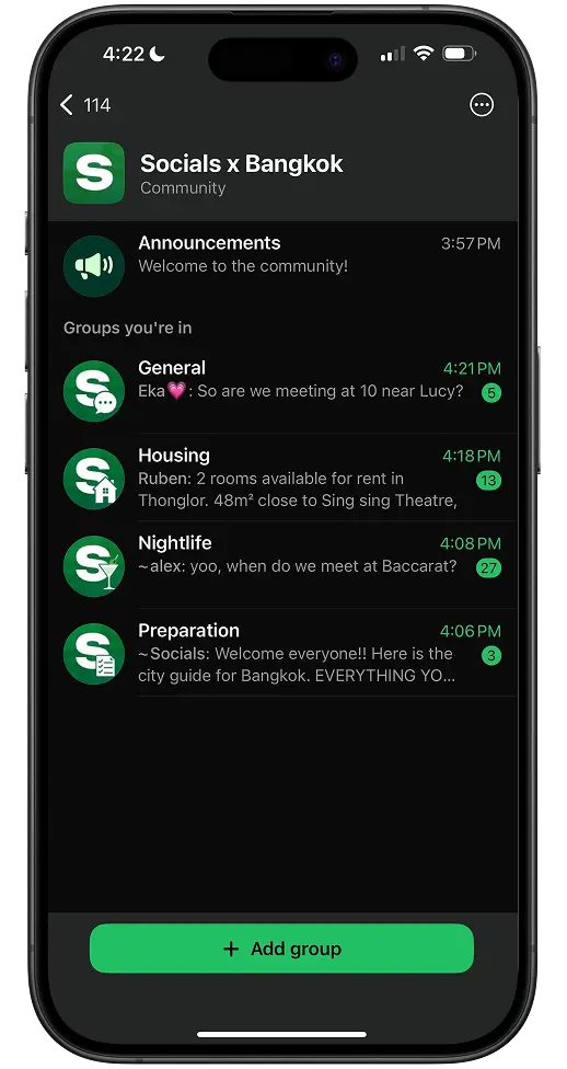 Students find us before they even book their flights. They're searching Google for "international students WhatsApp Amsterdam" or "Melbourne student group chat" and they find our communities.